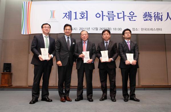 ÇÑÆí, À̳¯ ½Ã»ó½Ä¿¡´Â 2011³â ½Å¿µ±Õ¿¹¼ú¹®ÈÀç´Ü ½ÃÇà»ç¾÷À» ÈÄ¿øÇÑ Çѱ¹¿¹¼úÁ¾ÇÕÇб³ ¹ÚÁ¾¿ø ÃÑÀå(¡®²Þ³ª¹« Çʸ§¾ÆÆ®Ä·ÇÁ¡¯ »ç¾÷ ÈÄ¿ø), ¿µÈÁøÈï¿øÈ¸ ±èÀǼ® À§¿øÀå(¡®Çʸ§°ÔÀÌÆ®¡¯ ¿Í ¡®²Þ³ª¹« Çʸ§¾ÆÆ®Ä·ÇÁ¡¯ »ç¾÷ ÈÄ¿ø), ºÎ»ê±¹Á¦¿µÈÁ¦ ±èµ¿È£ ¸í¿¹ ÁýÇàÀ§¿øÀå(º» Àç´Ü ½Å¿µ¿µÈ¹Ú¹°°ü¿¡ ¿µÈ¿¹¼úÀÎ Àι°Àü½ÃÀÛǰ ±âÁõ), »ï°Å¸®ÇÈÃĽº ¾ö¿ëÈÆ ´ëÇ¥(º» Àç´Ü¿¡ ÀåÇÐ±Ý ±âŹ)¿¡°Ô °ø·Î °¨»çÆÐ¸¦ ÇÔ²² ¼ö¿©Çß´Ù.