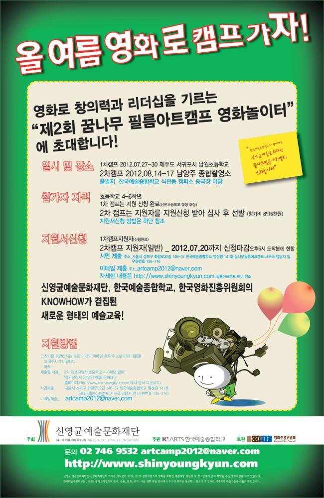 <Á¦2ȸ ²Þ³ª¹« Çʸ§¾ÆÆ®Ä·ÇÁ>ÀÇ Âü°¡¸¦ ¿øÇÏ´Â ¾î¸°ÀÌ´Â 2012³â 7¿ù 20ÀÏ ±îÁö ¡®Âü°¡ ½Åû¼¡¯¸¦ À̸ÞÀÏ(artcamp2012@naver.com) ȤÀº ¿ìÆíÀ» ÅëÇØ Á¦ÃâÇÏ¸é µË´Ï´Ù. ÀÚ¼¼ÇÑ ¸ðÁý ÀÏÁ¤Àº ½Å¿µ±Õ¿¹¼ú¹®ÈÀç´Ü ȨÆäÀÌÁö(www.shinyoungkyun.com)À» ÅëÇØ È®ÀÎÇÒ ¼ö ÀÖ½À´Ï´Ù.
